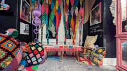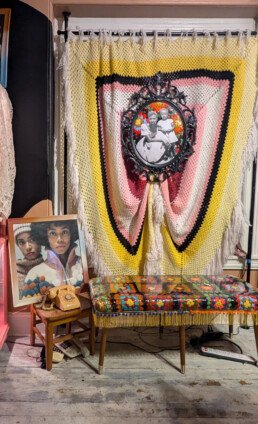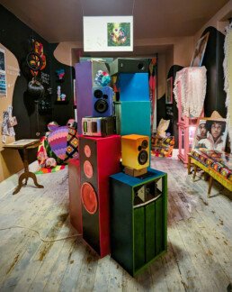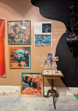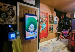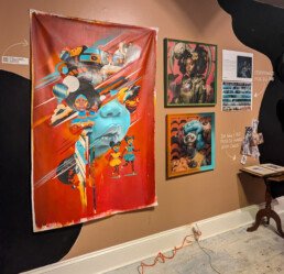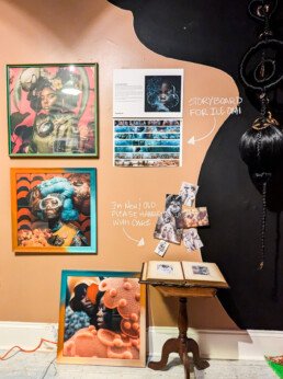Notes from Diaphanous is a collection of behind-the-scenes material culture and prototypes from the Diaphanous project. This exhibition, features a motion-responsive installation, AR canvases, and detailed plans for the project. For this iteration of the exhibition, we will be focusing on soft spaces, channeling Sankofa through archival images, imagined photographs, and textile art that emphasize protection and preservation. Underpinned by the philosophy of Sankofa as a means to imagine the future, this exhibition is a blend of old and new technologies and protective practices.